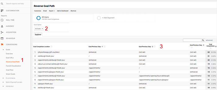 - Step 3. Now you’ll be able to see the previous pages people used before accomplishing this Goal on your site. That means the page or two just PRIOR to converting.