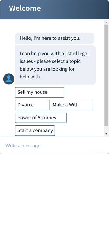 Rule based chatbots can’t offer a personised experience, for example if you gave a chatbot your name it won’t be able to remember it. As people inevitably use different grammatical structures, rule based chats breakdown. For example when a client wants a Will, they may say, “I want to start a new Will,” another client may use a different grammatical structure, “I need Will for myself.” We as humans understand both requests but a rule based chatbot can’t work that out and then has to pass the chat to a lawyer that in turn frustrates your client.