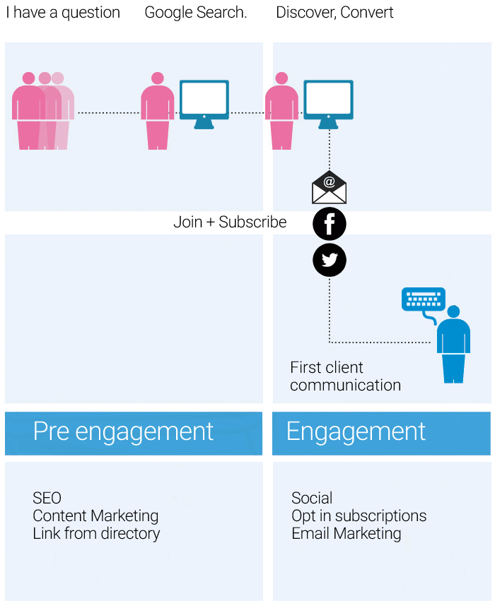 This process will help you see your potential clients touch points. It will reveal how you could improve the flow from all channels to and through your website. It will help you create achievable goals for you and your visitors.