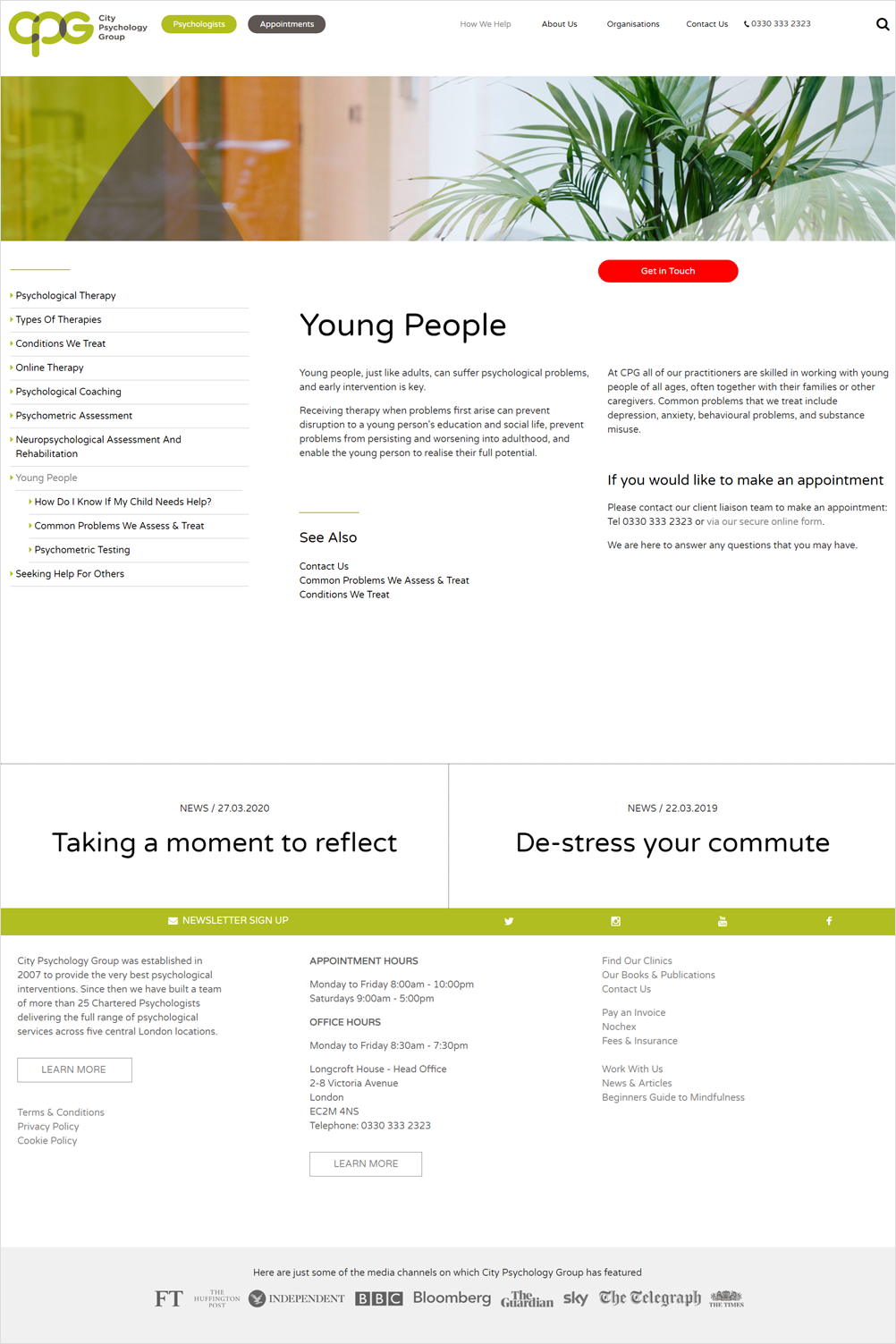 City Psychology Group was established in 2007, they have built a team of more than 25 Chartered Psychologists with expertise across the full range of psychological issues and interventions across five Central London locations.